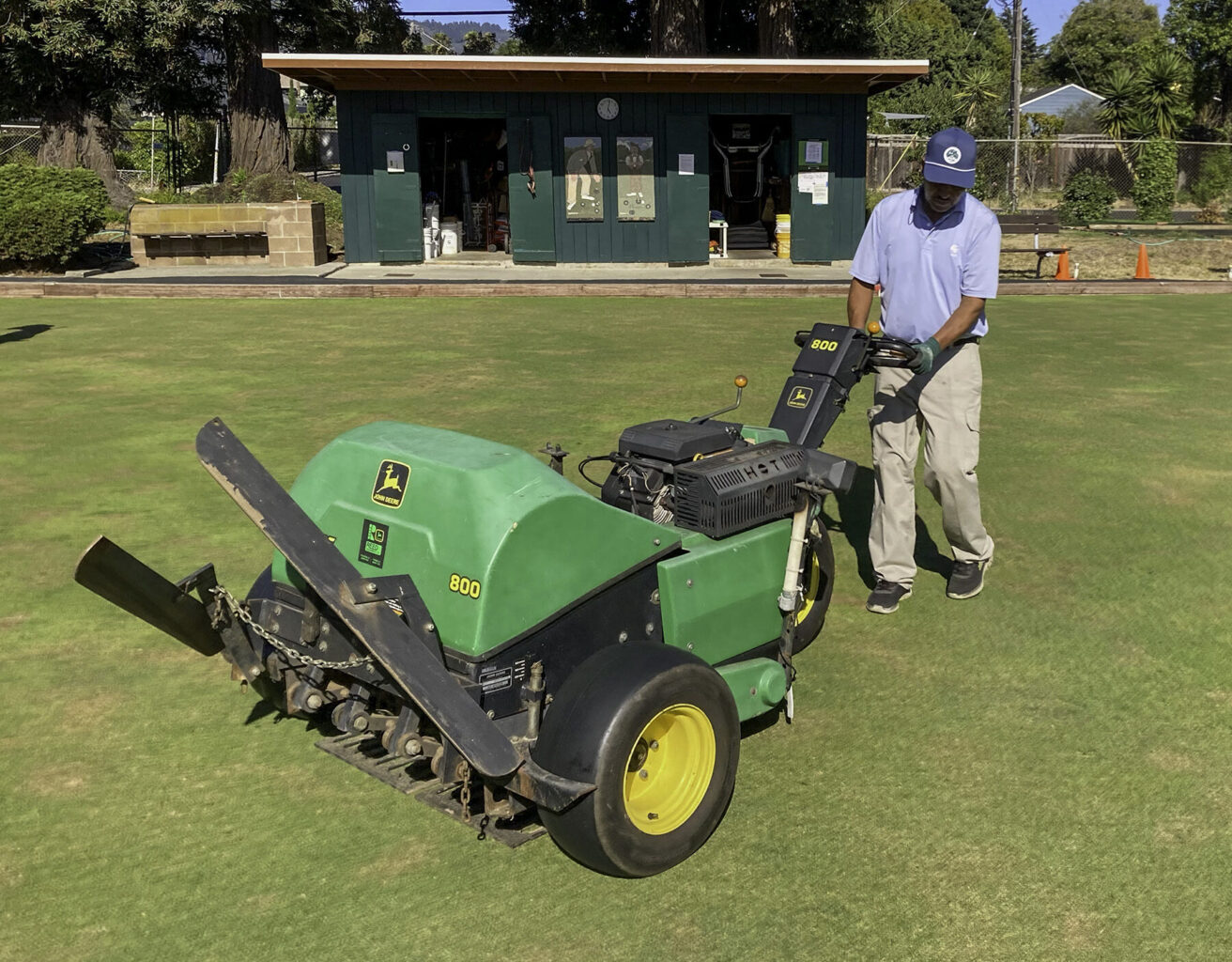 Subsequent steps involved the placement and leveling of sand, followed by the rolling out of the sod harvested from the nursery to patch the affected area. Light watering was applied to saturate the sand beneath, which will be continued for the next few days. The nursery area was also filled with plugs, sand, and seed to restore the removed section. We remain optimistic that the removal of the root and the installation of the new bent grass sod will yield positive results. In the interim, please exercise caution when bowling in the affected area.